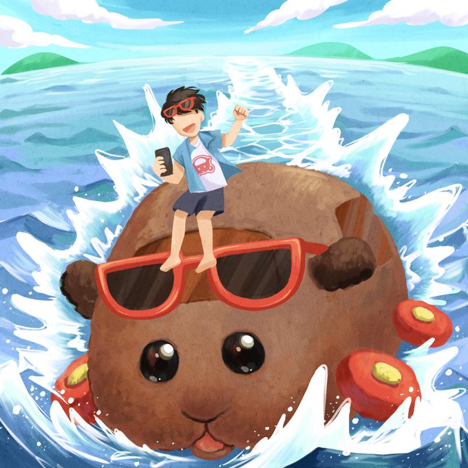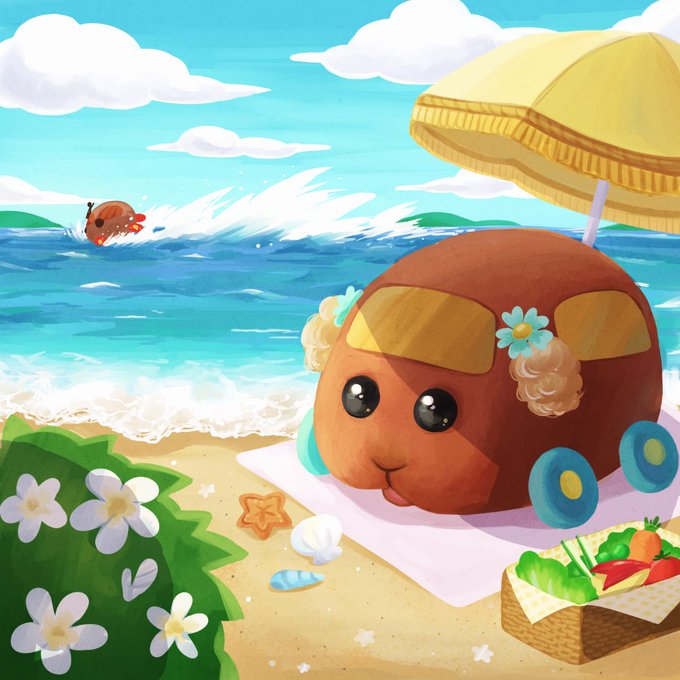 ビーチで一休みするチョコちゃん #モルカー #モルカーファンアート