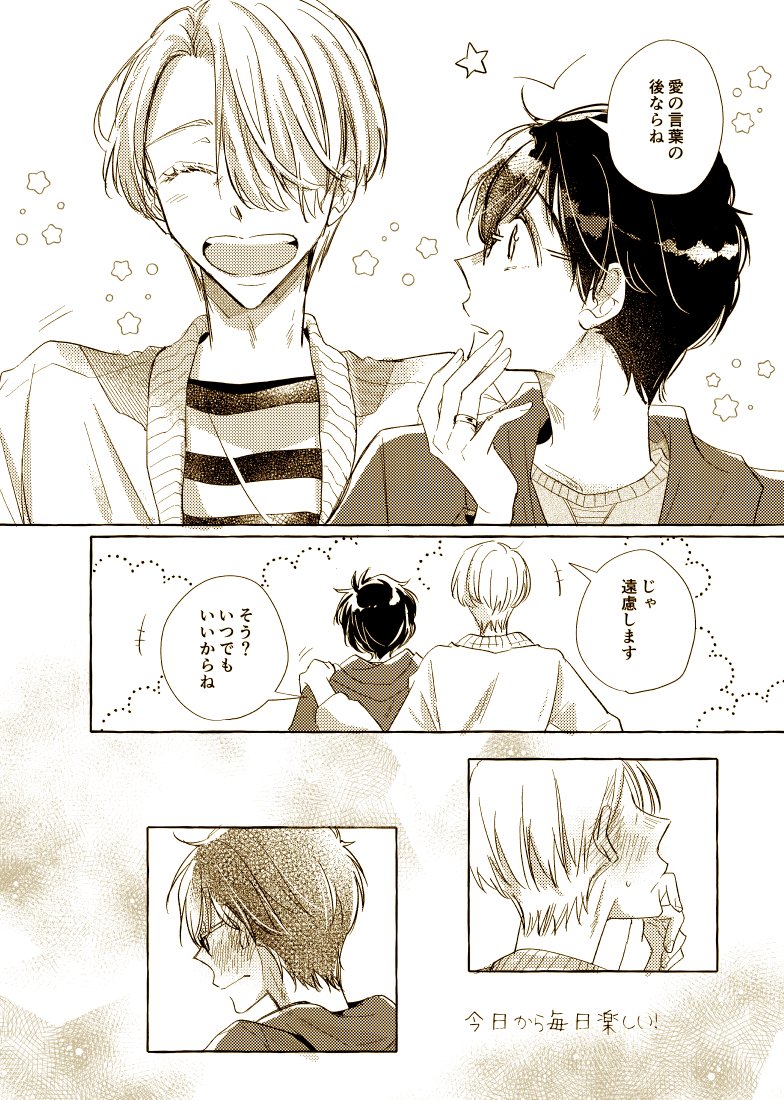 【ヴィク勇】多元宇宙の恋人たち 脱稿しました🥳12/18のサンプル①です! 色々なヴィク勇世界の、勇利たちによるのろけ話です☺️ Pサンプル⇒pixiv.net/artworks/10358… 🐯通販⇒ec.toranoana.jp/joshi_r/ec/ite…