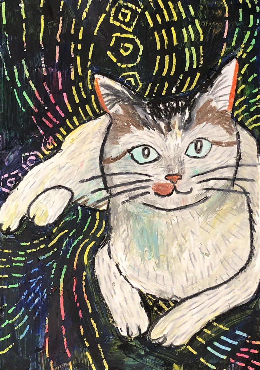 #アナログ画 #アナログ絵 #猫 #クレヨン #クレパス #オイルパステル #art #artwork #デザイン #絵画 #イラスト #illustration #絵 #絵描きさんと仲良くなりたい #絵描きさんと繋がりたい #お絵描き #美術館 猫を描きました。