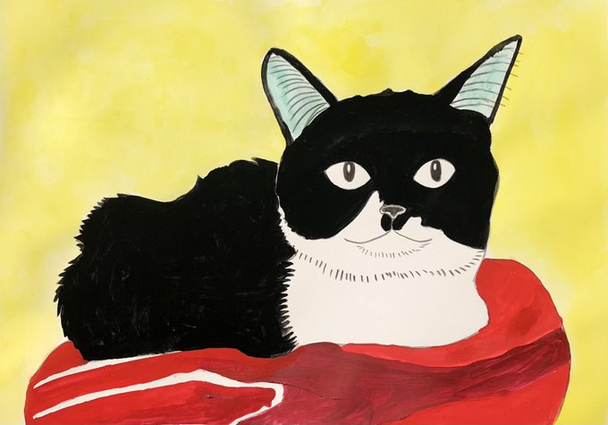 20 282 #猫 #アナログ #アナログ画 #色鉛筆 #クレヨン #クレパス #デザイン #絵 #絵画 #イラスト #絵描きさんと仲良くなりたい #水彩画 #アクリル 猫を描きました。 23/05/10 18:31