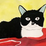 #アナログ #絵画 #デザイン #イラスト #お絵描き #絵かきさんと繋がりたい #絵 #猫 #アクリル #日本絵の具 #水彩画 #水彩 #ハチワレ たそがれている猫を描きました。