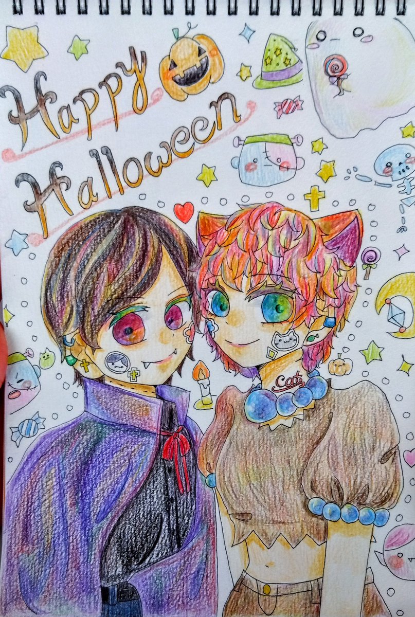 ハッピーハロウィーン🎃🍭 ということで、イラスト描きました! スケッチブックに色鉛筆です! #ハロウィンイラスト #イラスト好きと繋がりたい #アナログイラスト #色鉛筆画