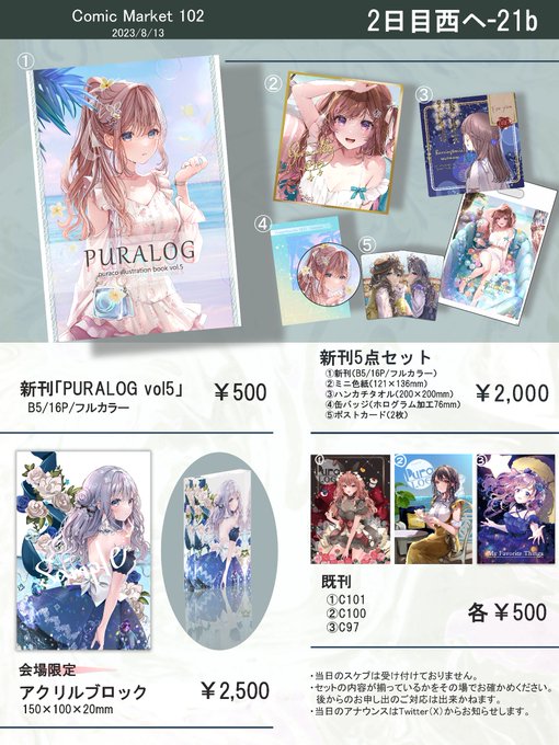 コミケ2日目、西へ-21bにてお待ちしております! かなり西1の入口に近いのでぜひ寄っていただけますと嬉しいです🍹 当日はよろしくお願いします! #C102 twitter.com/puracotte117/s…