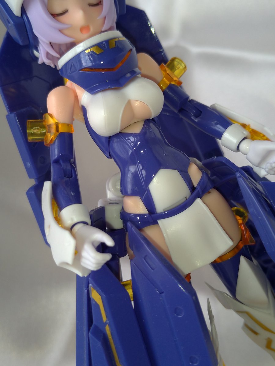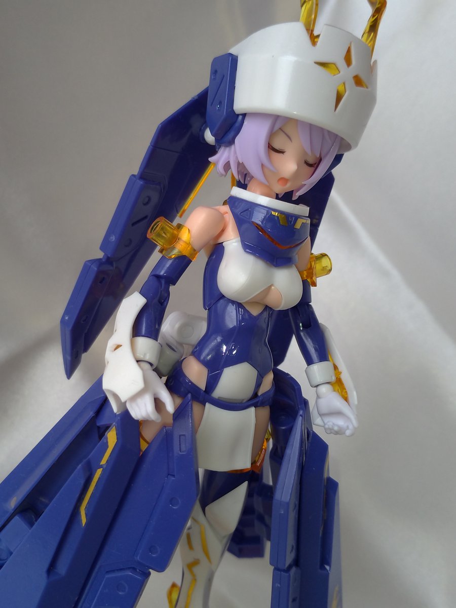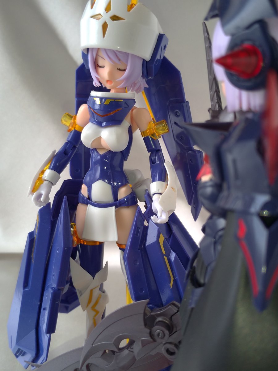 アーマー光沢。ちゃんとテカってるぅ。まあ、満足。技術がちょっと成長した感。エクソシストは聖女っぽい感じのほうが好みかなぁ。ギャル?っぽいのもいいけどな! #メガミデバイス #エクスキューショナー #エクソシスト