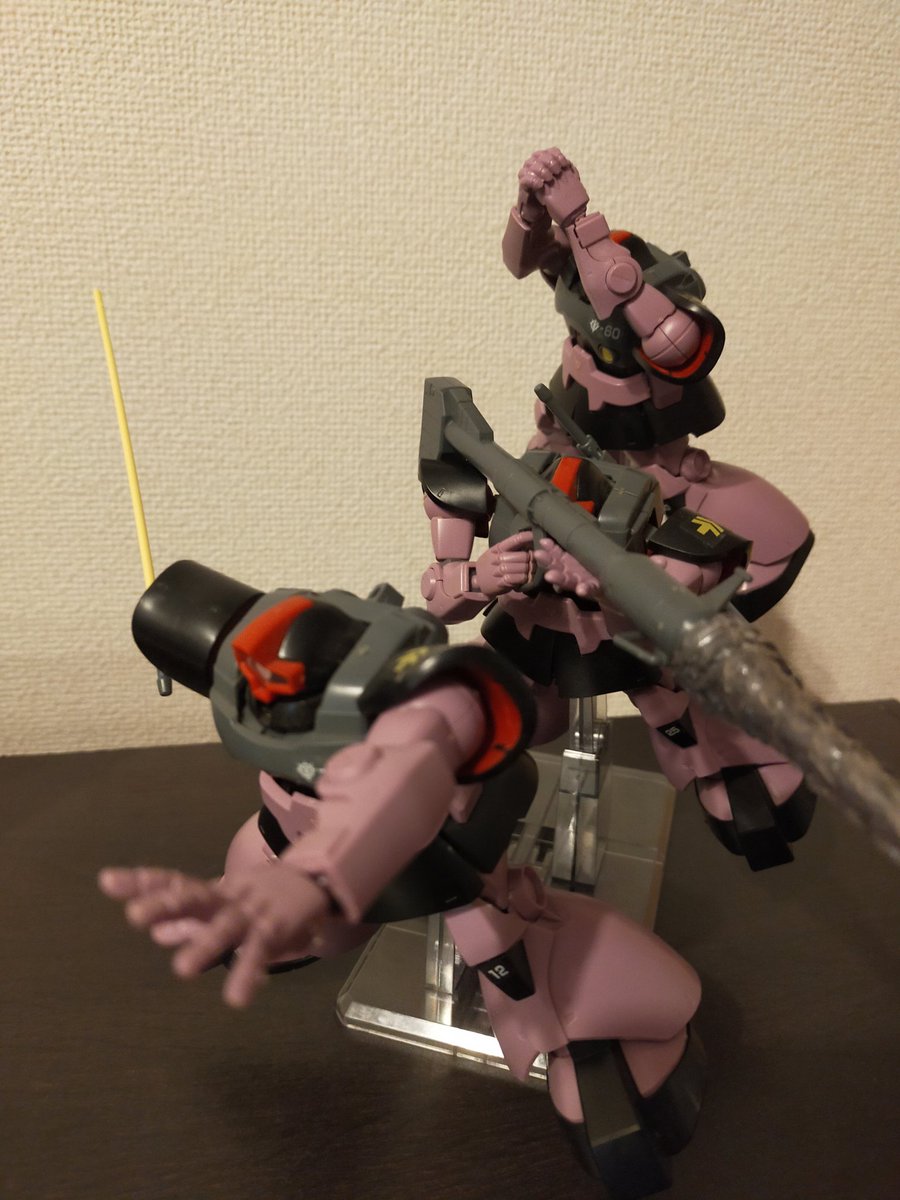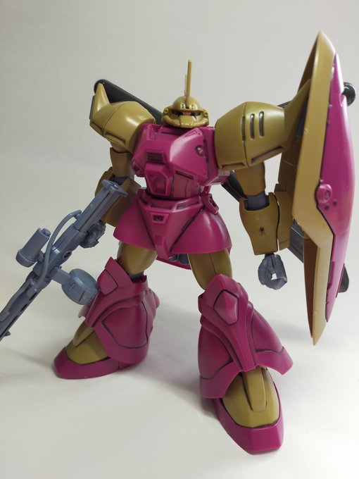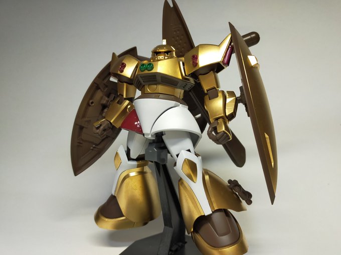 機体名:ゲルググシュバイン 武装:ビームナギナタ 両手のシールドを前方に向け、多数のブースターを一斉噴射し突進するのが主な戦い方。 ナギナタも装備しているが、得意では無い。 #ガンプラ #ガンプラ好きと繋がりたい #ガンプラの画像を貼るとRTされると聞いて