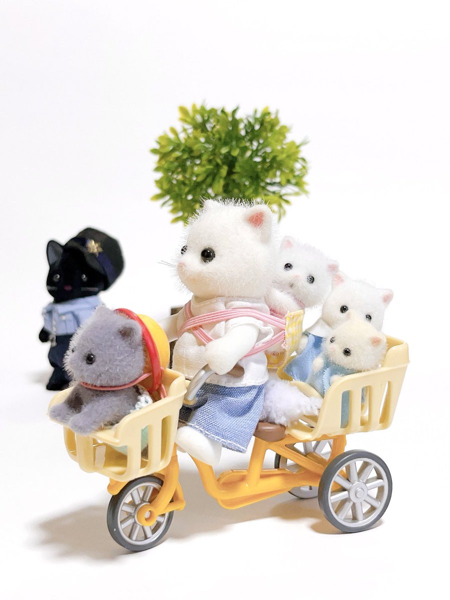 『ゆめいろまほうつかいのペルシャネコちゃん』 ゆめいろゆうえんちに遊びに行くペルシャネコちゃんのお洋服を作りました💫おそろいのとんがり帽子を被ってペルシャネコの赤ちゃんがはりきってご案内〜🙌😌 #シルバニアハンドメイドコンテスト #minne #トーカイ #お洋服部門 #シルバニアファミリー