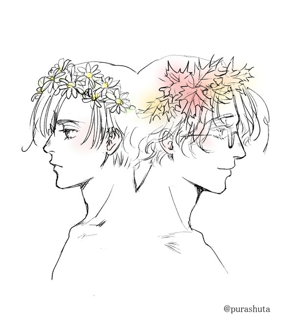26 120 マシュー&ロヴィーノで「花冠」 @APH1draw #APHワンドロ 23/01/24 23:09