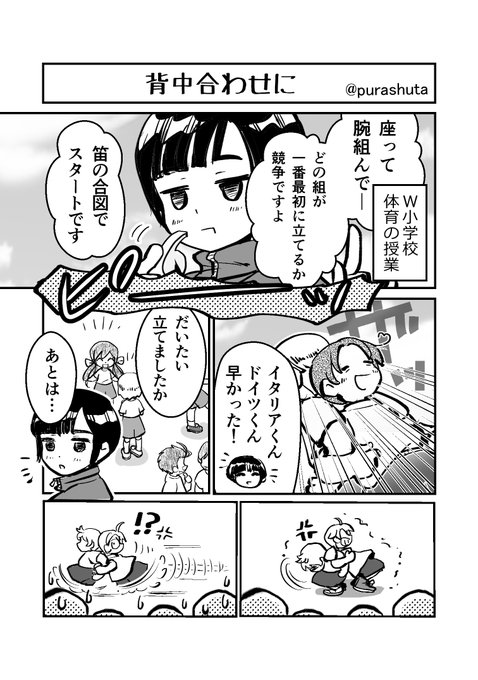 お題「背中合わせ」 2年前のお題でした しょうがくせいまちです これ、割と盛り上がった記憶あります😂 #春待ち版ワンドロ @harumati_draw