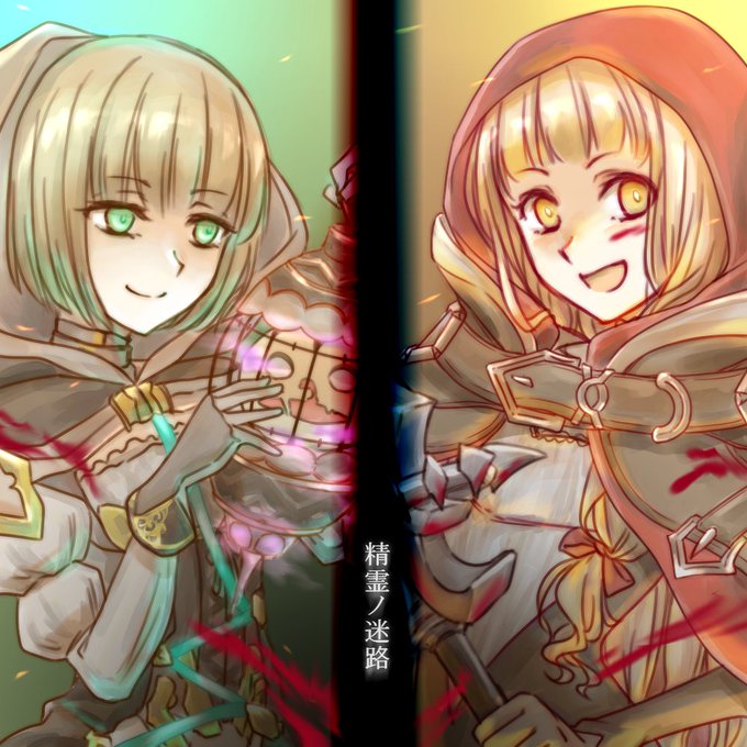 シノアリスコンサートが見られるのが嬉しすぎて聞きまくってます。全曲素晴らしいけれど、中でも「精霊ノ迷路」が妖しく恐ろしくも綺麗な曲になっていて、この二人のイメージと本当にぴったり!好きだ… #シノアリス_ファンアート