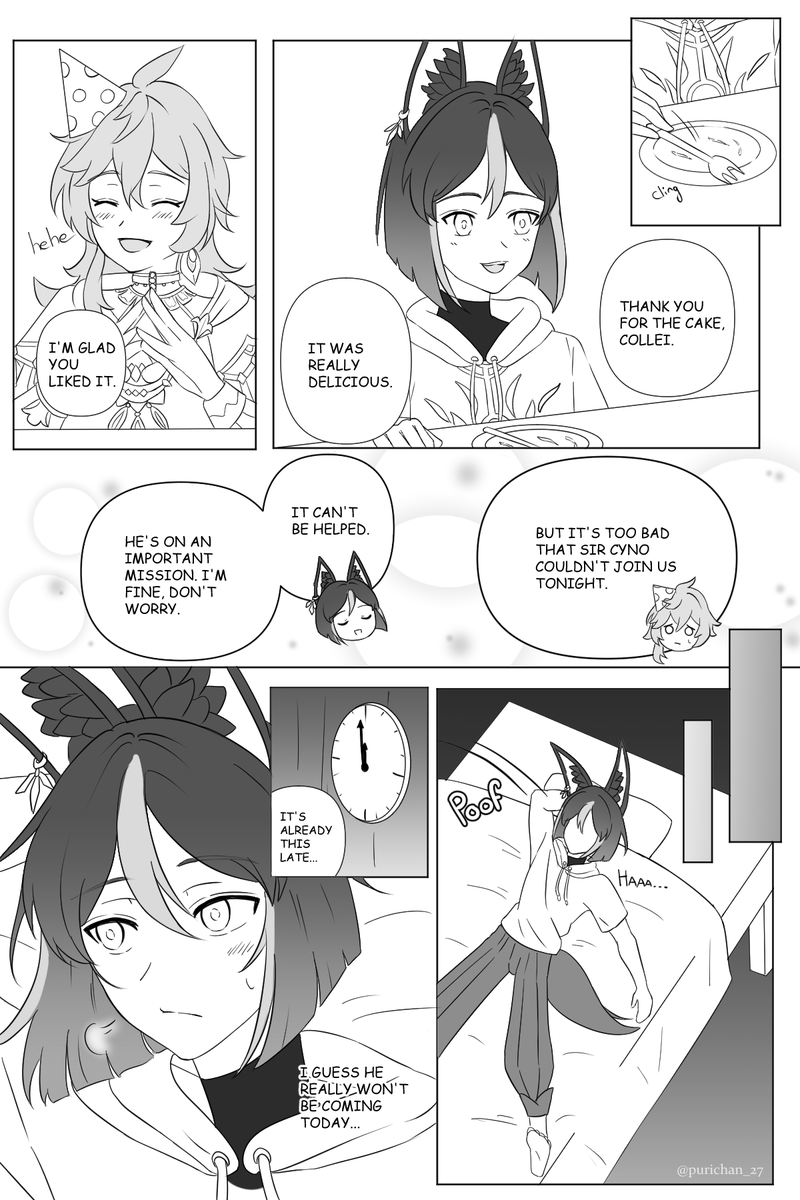 Birthday Present (Sorry I didn't have time to color it properly😭) Read right to left #ティナリ生誕祭2022 #ティナリ誕生祭2022 #セノ #ティナリ #セノナリ #Cyno #Tighnari #Cynonari