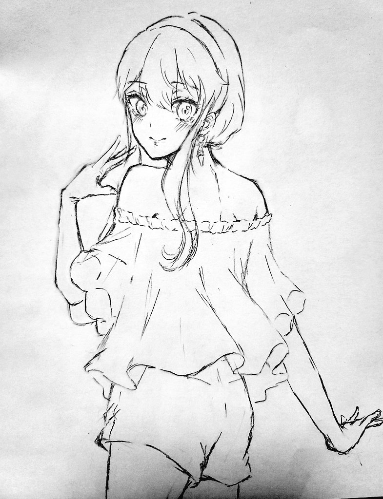 お絵描きしたかったけど、明日出社なのでiPad充電保ちたかったので久しぶりにアナログ描き描き🥹 アナログゆがみ加工とかできないからむずい!!