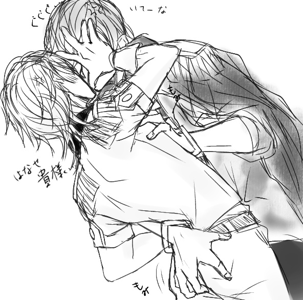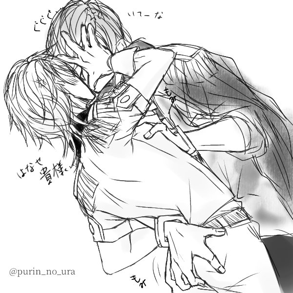 ※トル○イ🌻解釈のスカポーとジョニーのらくがき🏴☠️ フランソワ「なにあれ?」 ヘンリー「大好きな飼い主が取られてヤキモチ妬いてる犬だね」