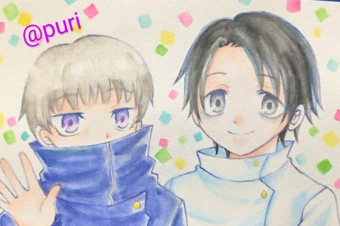 乙骨君と棘先輩(二年生ver) 水彩色鉛筆楽しかった〜💓💓💓 #呪術廻戦ファンアート #乙骨憂太 #乙骨憂太誕生祭2023 #狗巻棘 #水彩色鉛筆 #アナログイラスト #ドローイング #お絵描き