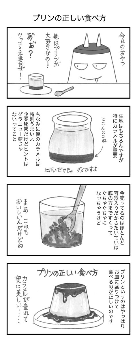 プリンの正しい食べ方 #4コマ漫画 #漫画が読めるハッシュタグ