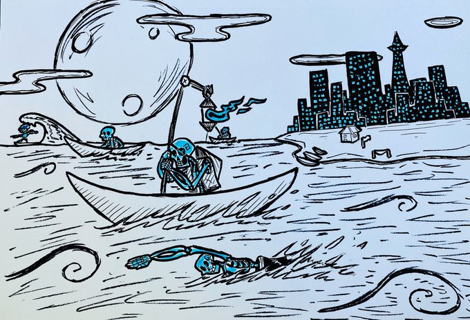 #YokaiTober 2021, Day 11 - Funa-yurei Even the Undead Need to Sunbathe…Moonbathe? #CloudieTober #art #traditionalart #ink #inkart #yokai #octoberartchallenge #arttwt #artwt #artist #artwork #ArtistOnTwitter #characterdesign #drawing