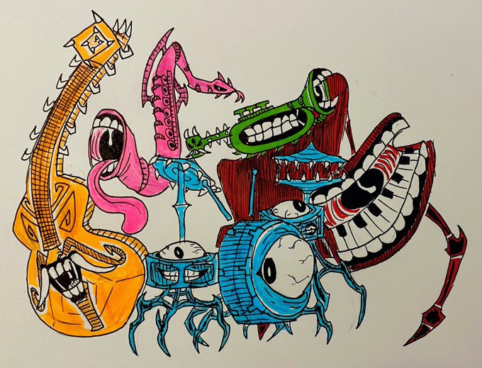 #YokaiTober 2021, Day 22 - Tsukumogami Jazzy Ghosts #CloudieTober #art #traditionalart #ink #inkart #yokai #octoberartchallenge #arttwt #artwt #artist #artwork #ArtistOnTwitter #characterdesign #drawing