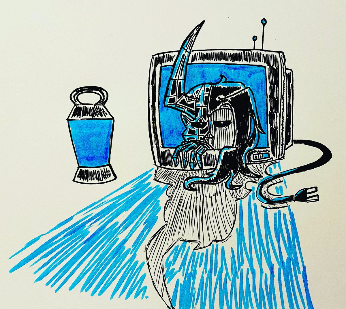 #YokaiTober 2021, Day 23 - Aoandon Fearful Visage Behind the Blue Light #CloudieTober #art #traditionalart #ink #inkart #yokai #octoberartchallenge #arttwt #artwt #artist #artwork #ArtistOnTwitter #characterdesign #drawing