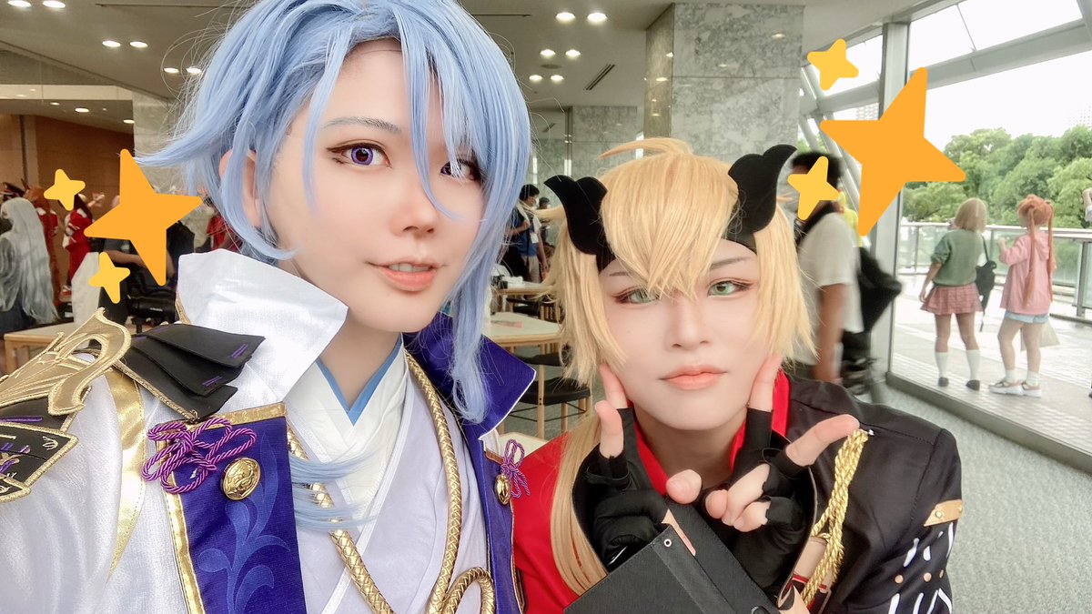 5 30 おそほ⚠️コスプレ となコスお疲れ様でした! 13日はとなコスにみなみんトーマと、まなちゃん綾華と一緒に綾人で参加してました✨初出し綾人難しい😂 お写真撮って下さった皆様、交流させていただいた皆様、ありがとうございました!!原神レイヤーさん達と沢山交流できて嬉しかった〜☺️✨ #となコス 22/08/14 22:33