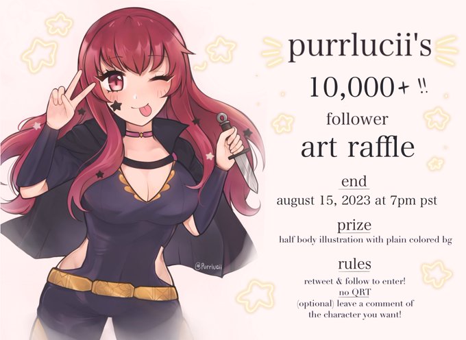 🤍 Art Raffle 🤍 im a littleee late 🥹 but its giveaway time!! thank you so much for 10k+ followers !! i cant thank you enough ;w; - retweet & follow to enter! - no QRT! - ends 8/15! 1 winner will receive a half-body drawing of their desired waifu B) thank you & good luck!