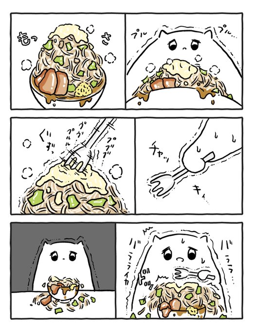 食欲が加速してきたので🍝🍮🍜🍦 これまでの食事シーンをまとめました (ながくなりすぎて全部はムリでした…) #食欲の秋2022 #食欲の秋 #ぷるねコ #漫画が読めるハッシュタグ