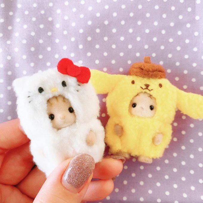 このトリオめちゃくちゃ可愛いよぉ😭🥨🧡 #シルバニア #シルバニアファミリー #sylvanianfamilies #シルバニアハンドメイド #キティちゃん #ポムポムプリン #シナモロール