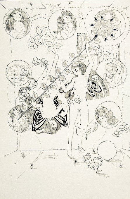 休日はのんびりお絵描き(*゚∀゚)🖊 これは絵はがきねっ(*´∀`)💌 あと下描き描いてるけども、集中力無くなってね、これは息抜きさっ💖 #アナログ絵 #ペン画 #お休みくらいお絵描きしたいわょ