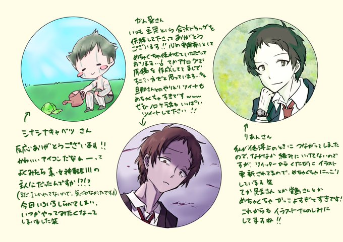 # フォロワーさんのアイコンを自分の絵柄で描く 第二弾できましたー! 反応ありがとうございましたー!!!