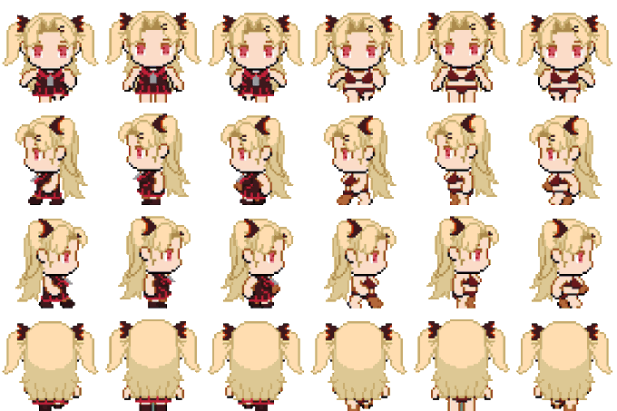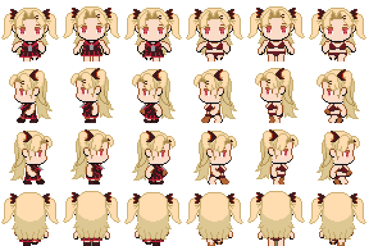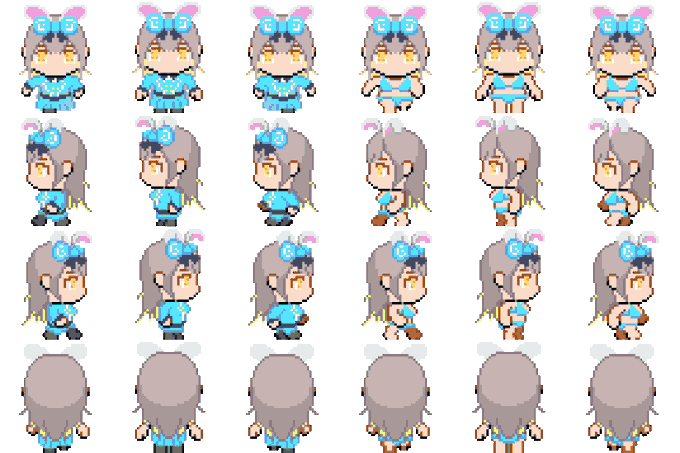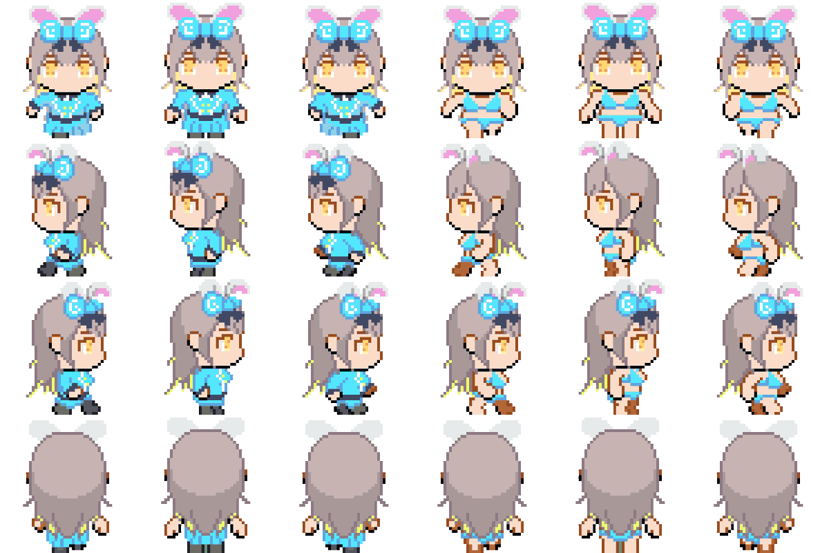 #ゆにぴく #ライヴラリ #ドット絵 ツクールMVの素体を元にドット絵ゆに。 ※元サイズだとぼやけるので10倍サイズにしています。