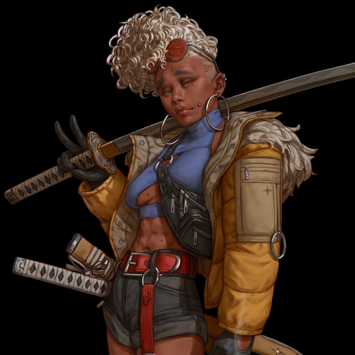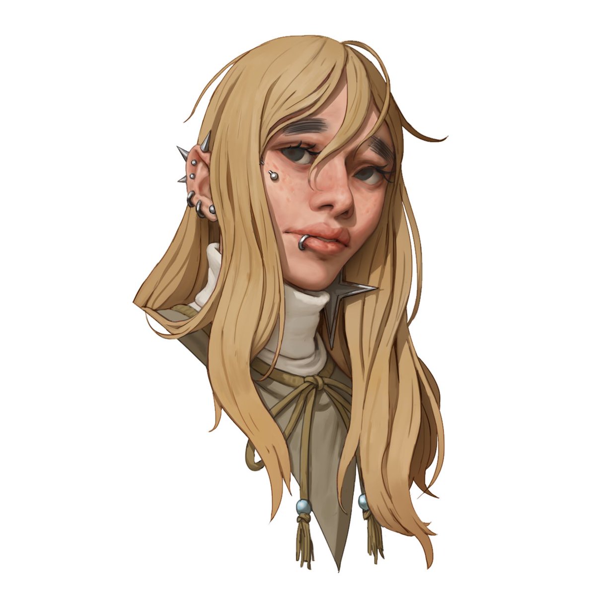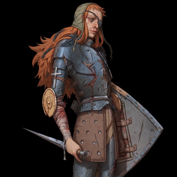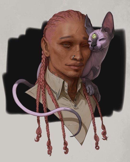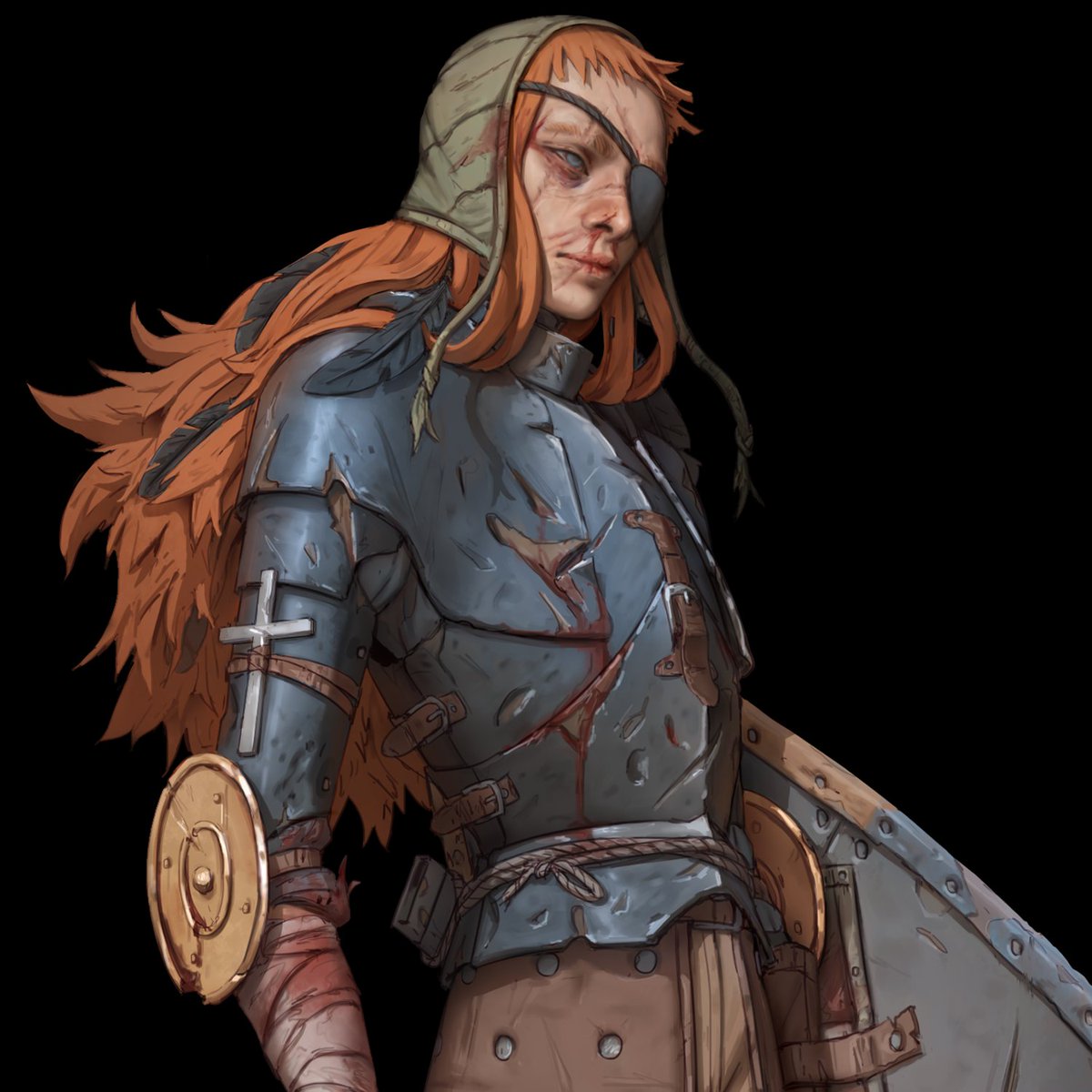 I randomly remembered I had made a mock-up portrait of Ena, for when she is more presentable and less beaten up. I think I probably scrapped it because the likeness changed when I was rendering the full concept. I quite like this one though, makes me want to do more cel stuff. twitter.com/pv_hristov/sta…