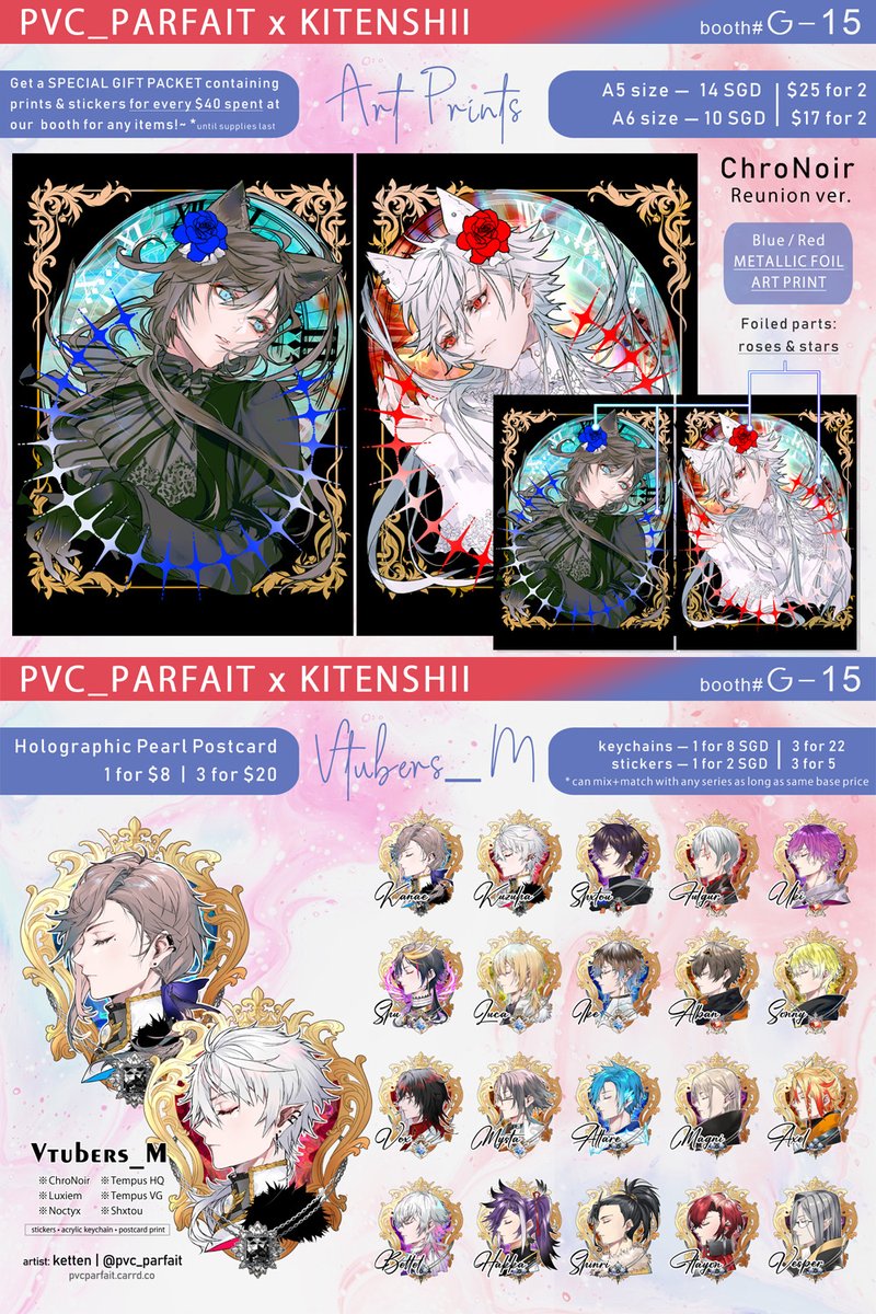HI!! Late post but here's my catalog for ACX @ Booth LB-01 Debuting my 6 new foiled prints at this event! 4 Honkai Star Rail (supposedly 6 but I couldn't cram on time lol) and also Shu YAMINO/HIKARINO (my kamioshi ;o;) See you this weekend! #ACX2023 #ACXfanfair2023