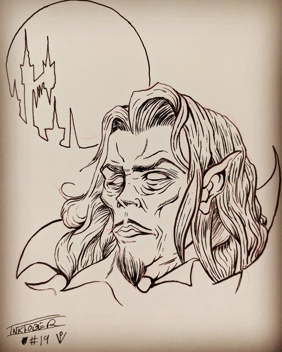 This one isn't much, and is late from yesterday, but finished the inking on it today. Been rereading Dracula and had him on the mind a lot. Castlevania's Dracula has long been a favorite design of his to me! #inktober #inktober2020 #dracula #castlevania #halloween #vampire