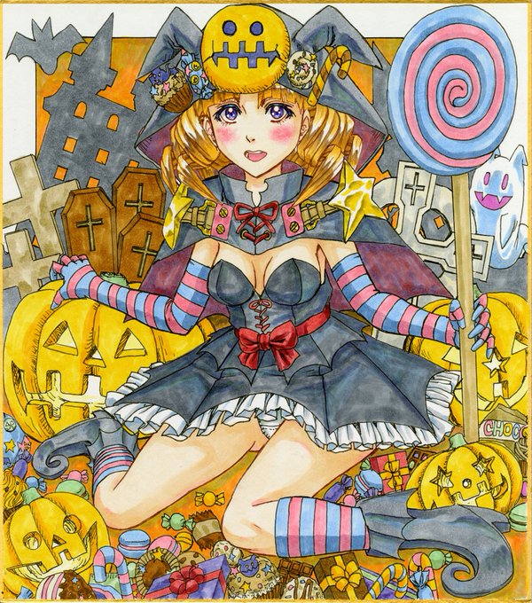 ハロウィン画取り掛かり遅く間に合わず、 去年の再掲で😛 個人的にはお気に入りHappyHalloween!🌙🍩🍭🎂 #創作 #イラスト #オリジナル #コピック #ハロウィン #マルチライナー #オリキャラ #絵描きさんと繋がりたい #イラスト好きさんと繋がりたい #お絵描き好きさんと繋がりたい