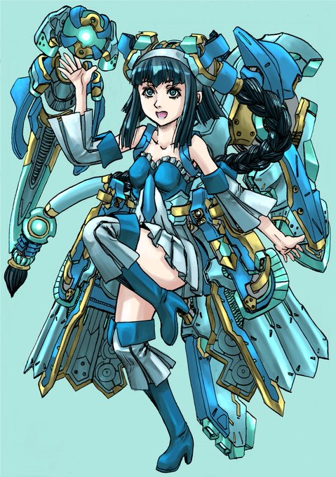 ペン画デジタル化したメカ娘の途中経過🌞 基礎色塗り一応完成😃 線画・色微調整します。全線画クリンナップしたいなぁ⛩️ #創作 #イラスト #オリジナル #メカ娘 #Gペン #ペン画 #クリスタ #オリキャラ #絵描きさんと繋がりたい #イラスト好きさんと繋がりたい #お絵描き好きさんと繋がりたい