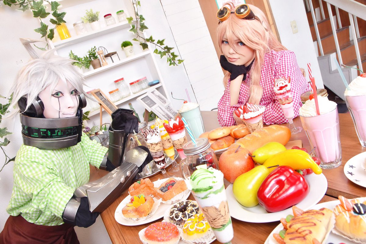 ⚠️コスプレ/メンテ組 🤖「ロボットの作ったお菓子を求めて、遠方からのお客さんで行列、間違いなしですよ!」 🐰「ほ…他にも作ったんだよ…?××を入れたクッキーとか…×を入れたチョコとか…」 キーボ:@haruka_tenryu Photo:@nikinin001