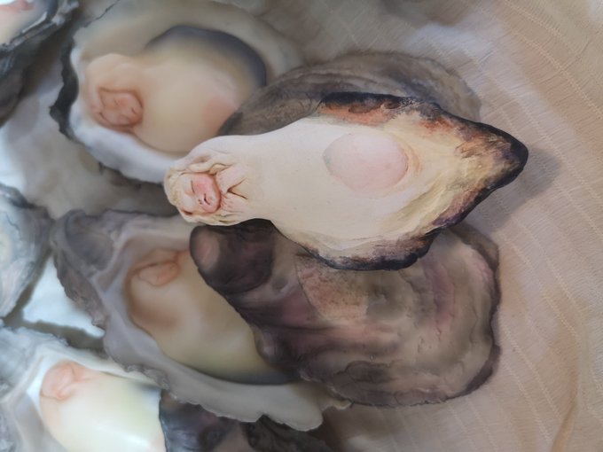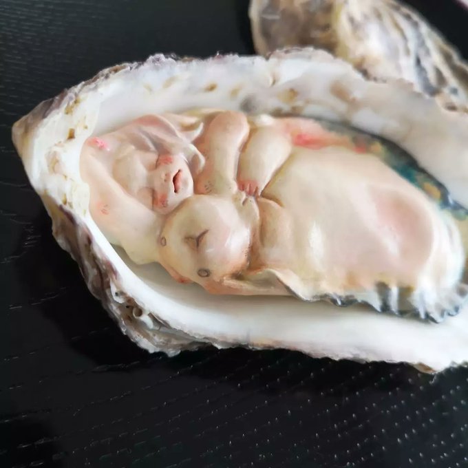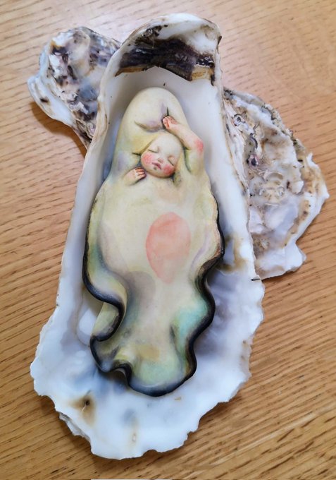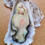 牡蠣がだっこしてるのは、ウサギのぬいぐるみです。 記憶にある一番古いお友だちは、うさぎのぬいぐるみでした。 閉じられた世界で真珠みたいに一体化したうさぎさんです。 twitter.com/pygmalion39/st…