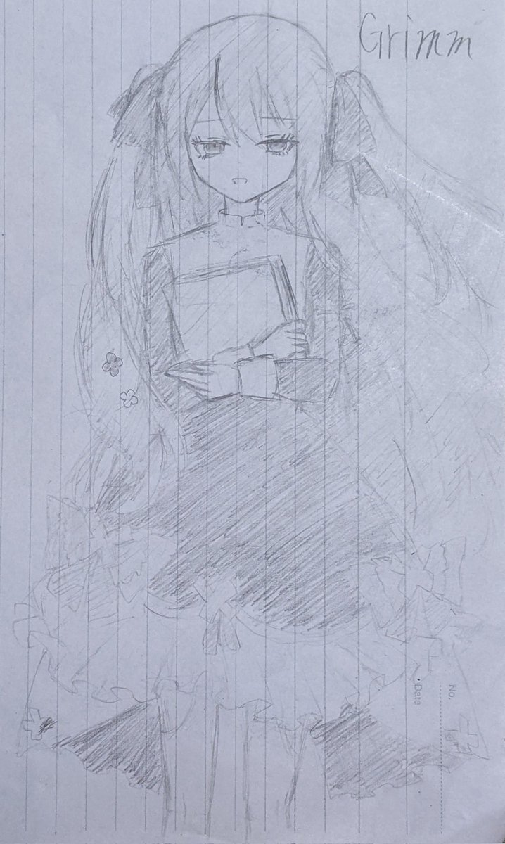 0 1 #ノコッとアート 授業中にらくがきで描いたグリムちゃん 学校でのらくがき当分はグリムちゃん描いてそう、かわいいので 21/12/01 17:08