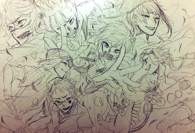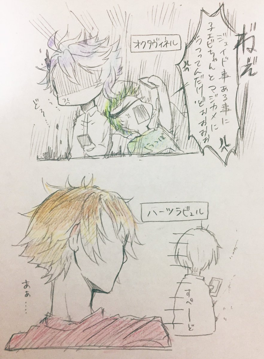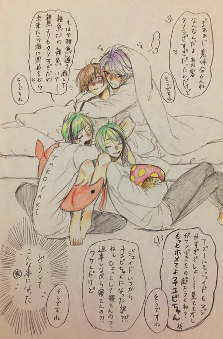 モストロ・ラウンジで色々あって心身ともに疲弊しまくったので夜中に突然監督生を呼び出したオクタヴィネルの図。 監督生「殺されるのかと思った」 🐙🐬🦈🦐 #twstファンアート #twstプラス