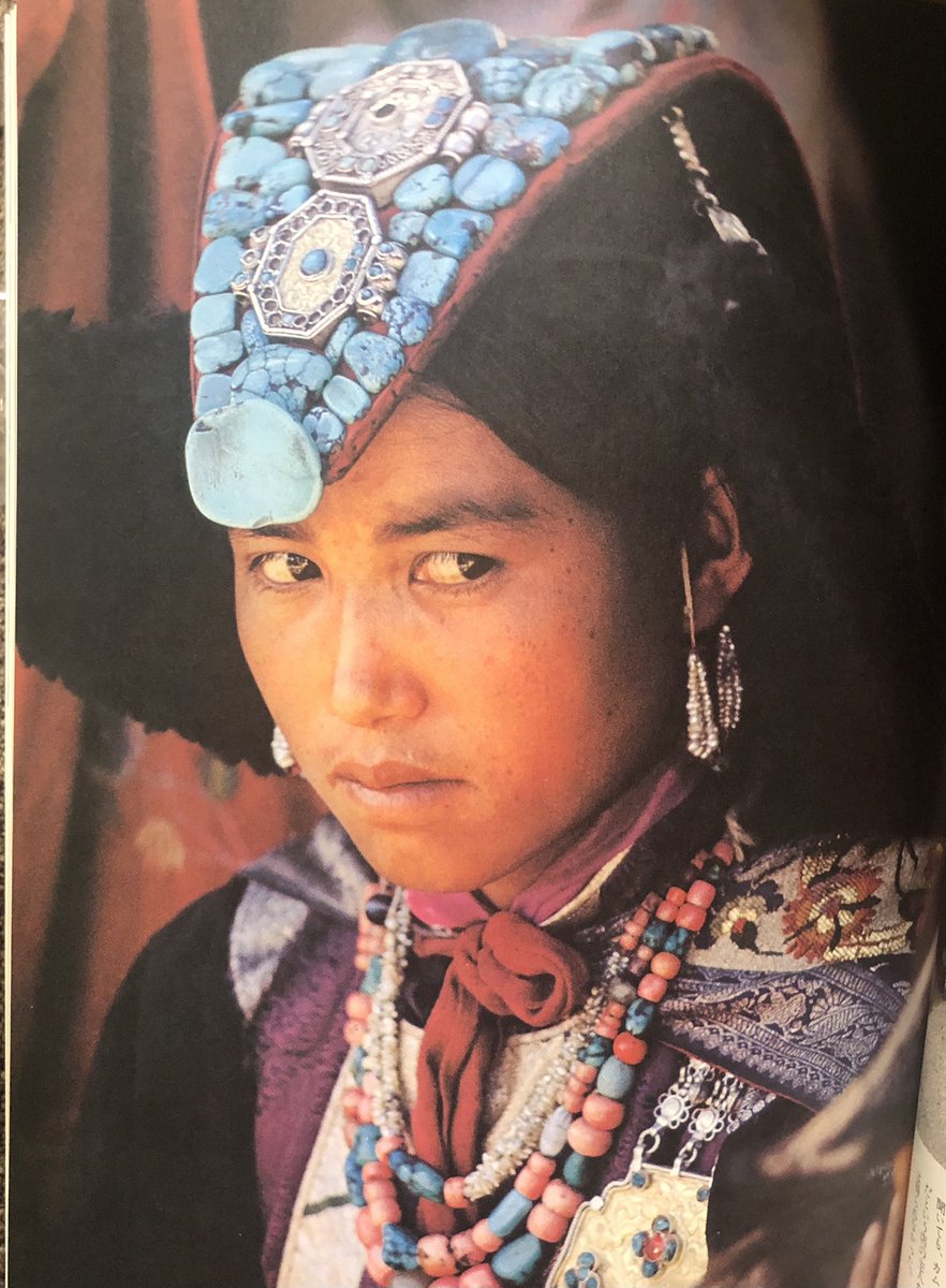 私、少しでも重いとアクセサリー着けてられないから世界の重い装身具ってどうやって着けてるんだろう?と疑問に思って民俗学の本みてみたの チベットの頭飾りなんてトルコ石100個も縫いつけて頭に乗せてた