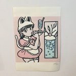 名古屋cafe DODOさん ( @cafe_dodo )で5月28日まで、絵を展示して頂いています!4点新作を描きました! 【5月27日(土)】は、在廊もします! 似顔絵描いたり、グッズ購入してくださった方にその場で絵を描いてプレゼントしたりしたいなーって考えてます!またお知らせします!ぜひ遊びに来てね😸 twitter.com/cafe_dodo/stat…