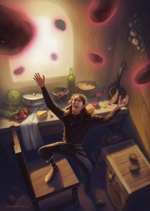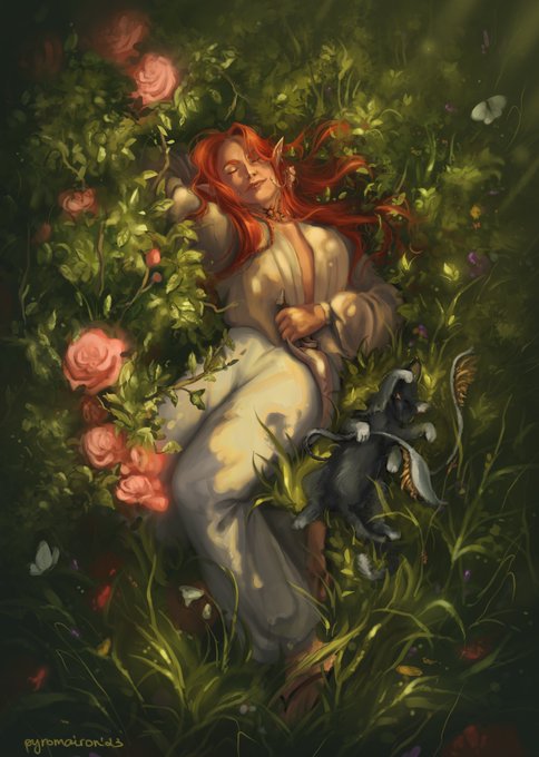 Oh, it's #portfolioday! 🌿 I'm pyromairon and I drew fantasy illustrations. I also a big fan of dnd and stuff :з All links: linktr.ee/pyromairon 🤍 #ArtistOnTwitter #fantasy #digitalart #illustration