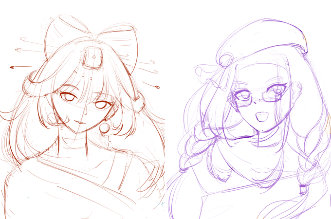 Informal, mindless, relax sketches Open for name suggestions So far they will be "Danya" and "Ranae" #originalcharacters #rkgk #Procreate
