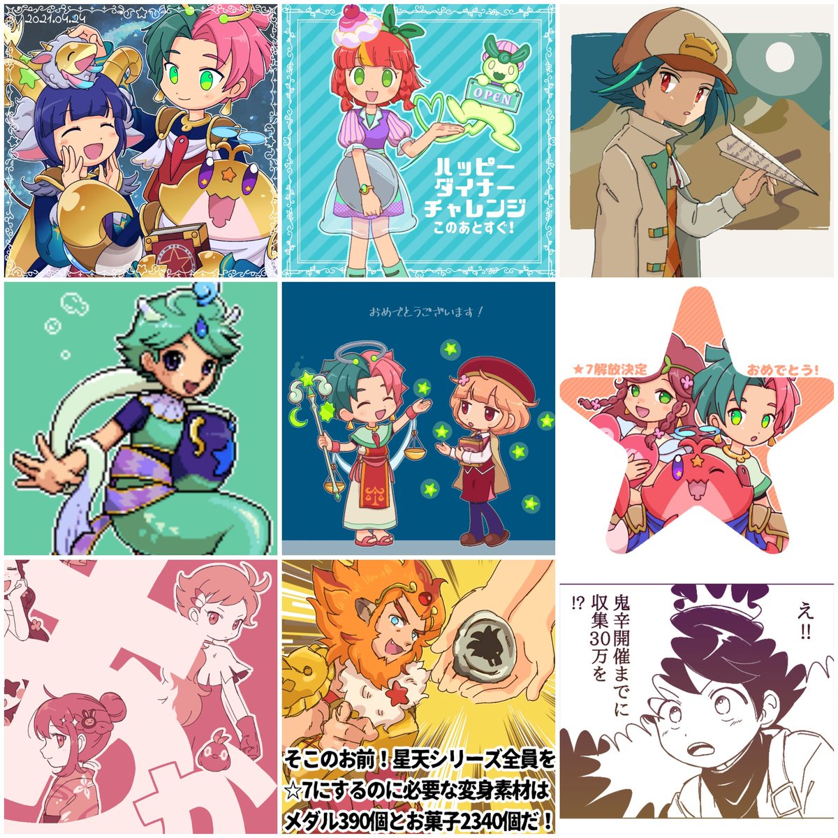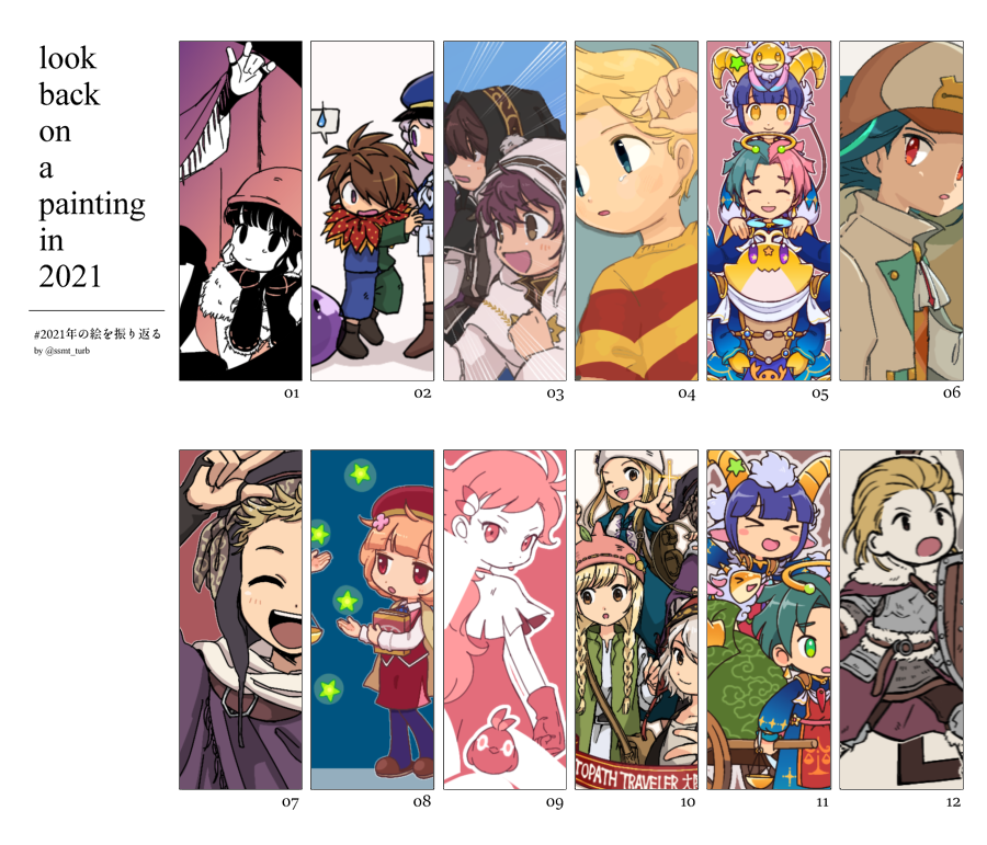 #2021年の絵を振り返る 推しシリーズの出番がたくさんあったなぁ~って感じです (ぴか天襲来→ハッピーダイナー→ベストール鬼辛→海の玉手箱→司書官ラッシュ→星天☆7→ティルラ鬼辛→呪いのお月見→アルガー鬼辛)