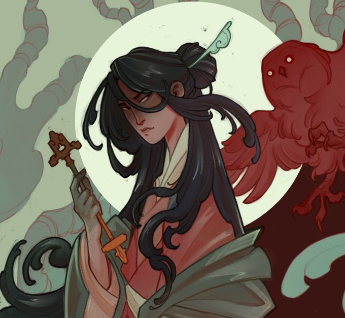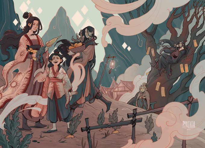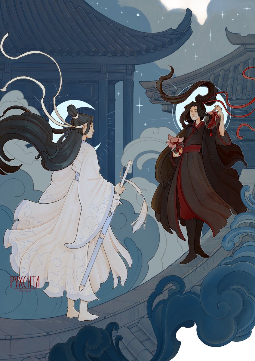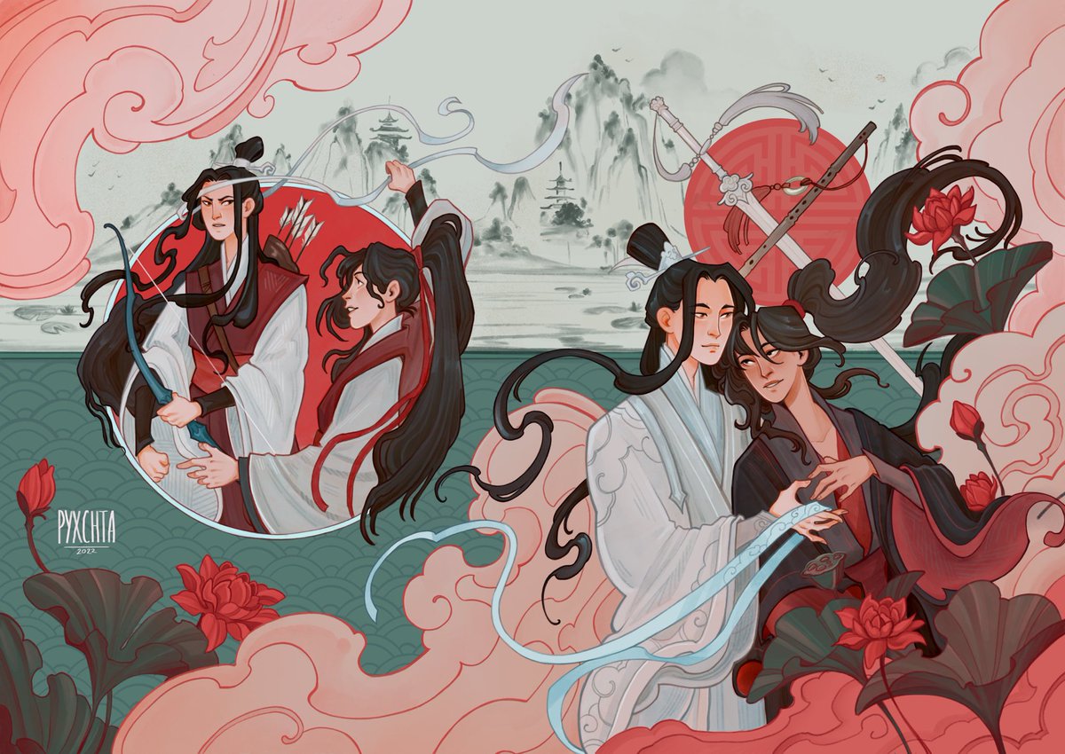 i am so so so grateful that mods gave me an opportunity to draw the inner cover for the zine! i nearly died of the weight of responsibility that time, and i hope ppl who bought the zine liked it 🤞 #artbookchenqing #mdzs
