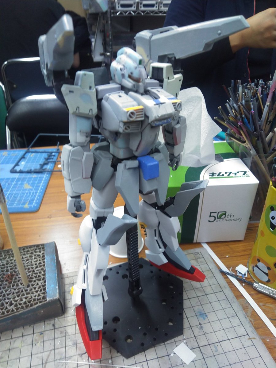 [ ゚Д゚] デカールを貼り終わり、艶消しクリアを吹いたますヨ。 組み上げるとこんな形になります。 名前はYMSN-04「ヴィルデザウリア」とでもしときましょうか。 これから細部のリタッチとかやって完成に持っていきます。 #ガンプラ #ガンプラの画像を貼るとRTされると聞いて