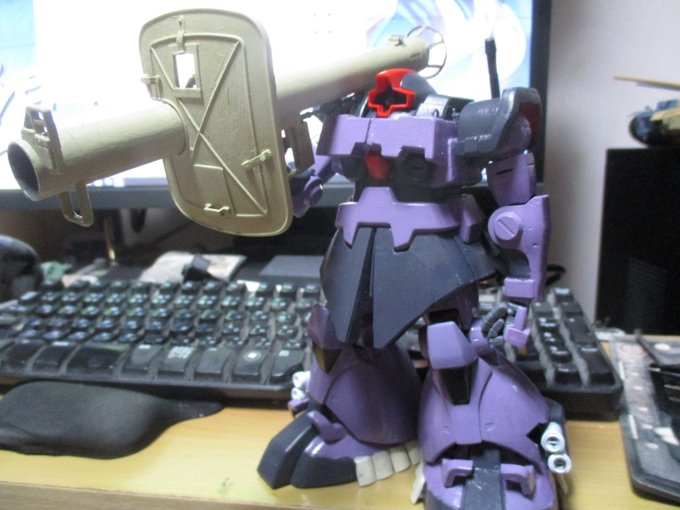 [ ゚Д゚] ビッグトレー絶対殺すマン仕様のドムにメイン武装を搭載させてみましたヨ。 ビッグトレーを一撃で撃破できる140㎝ラケーテンバズ(単発)がメイン武装です。 正面装甲はビッグトレーの防護兵器に耐えられるように強化。 #ガンプラ #ガンプラの画像を貼るとRTされると聞いて