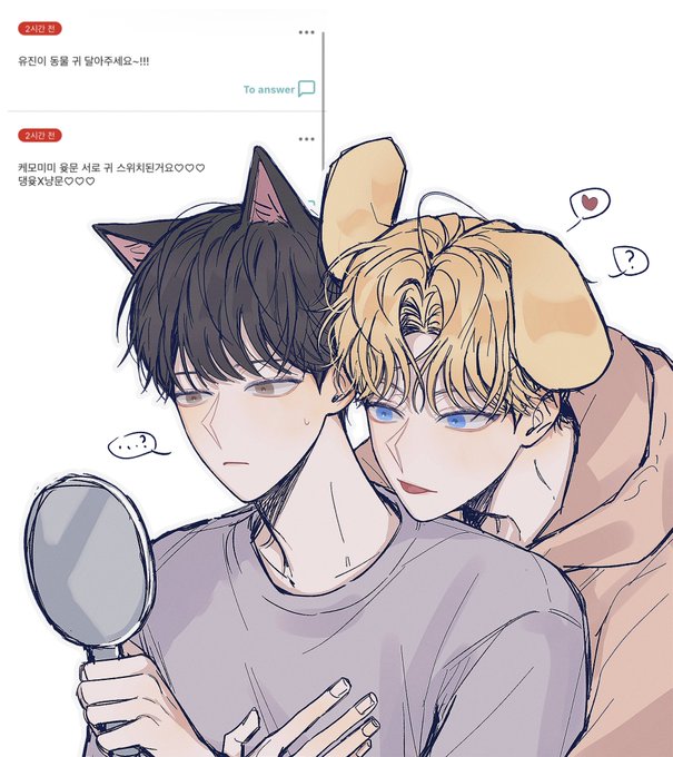 하.. 저진짜저만보려했는데 갑자기가슴이벅차올라서공개핮니다…. 저의사랑스러운트친이그려준❤️유진문대💛입니다………. 아너무사랑스러… 저는 되를줬는데 말을받앗네요…