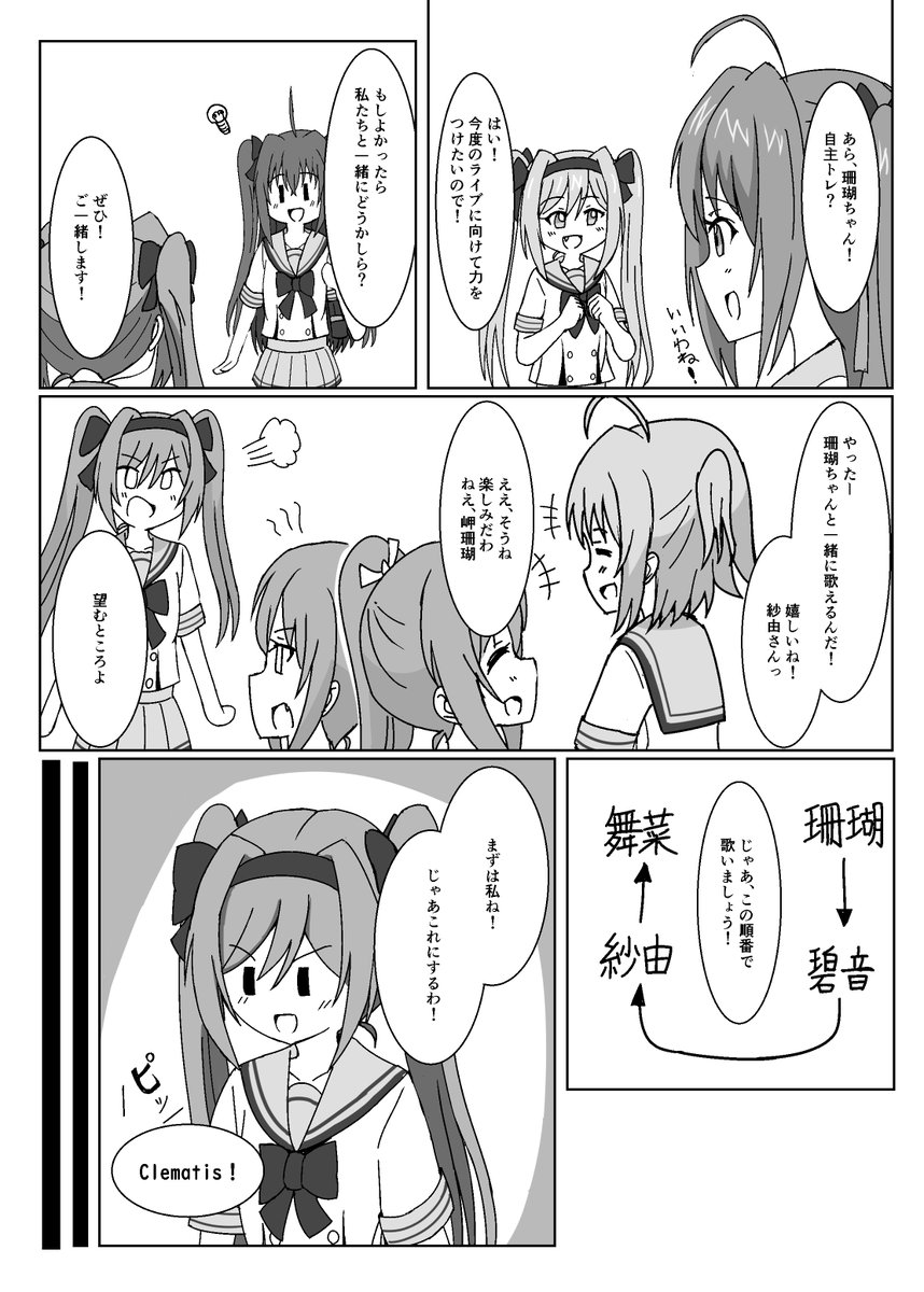 C102 日曜日 東6ホール ニ-05b Re:ステージ!二次創作本サンプルです テーマ:カラオケ 1/2