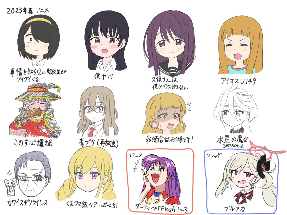 4 15 絵のリハビリに 最近追ってたり見てたりしたものを落書きした 23/06/02 13:26