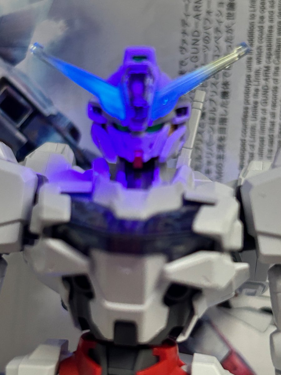 3 23 #ガンプラ #水星の魔女 #HGガンダムキャリバーン ブラックライトを当てると違った雰囲気が楽しめます。(アンテナ・胸部) 23/07/18 18:23