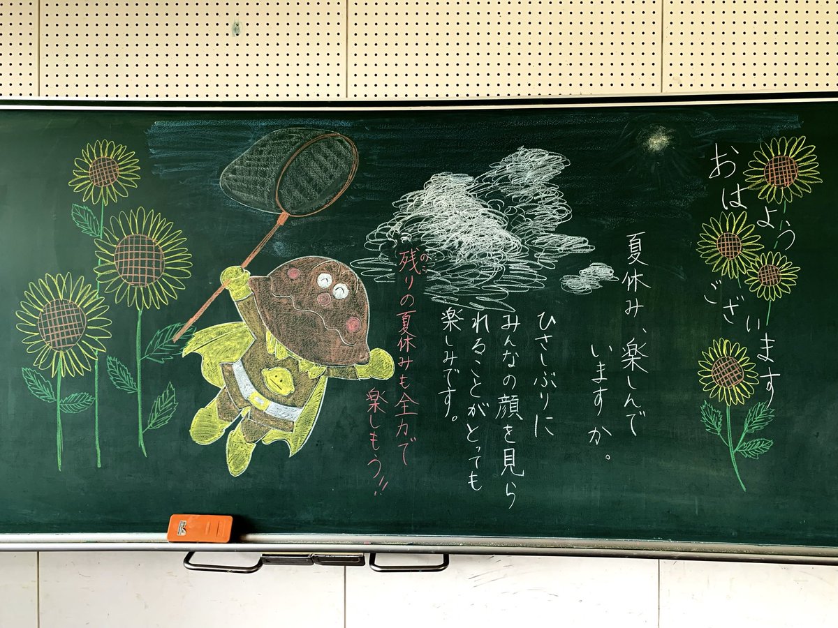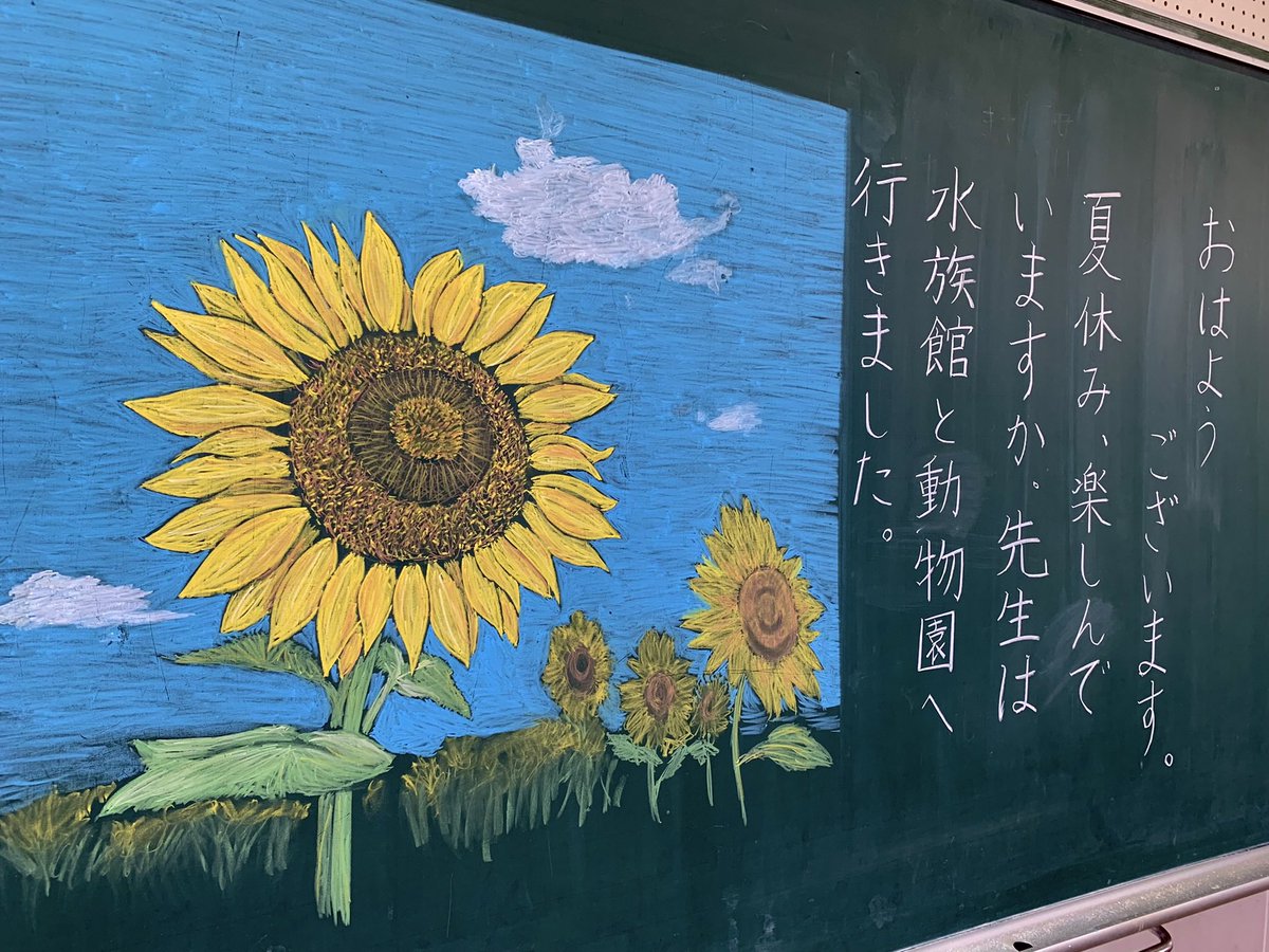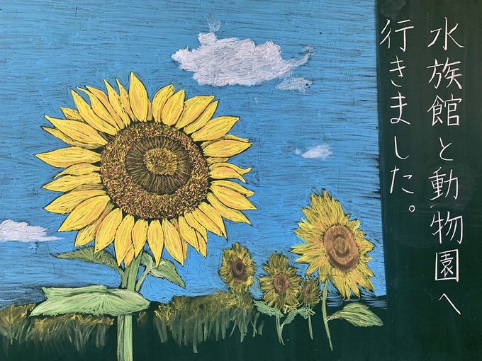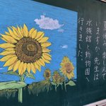 1 18 黒板を新しく塗り替えると言われて子どもたちに見せる前に消したひまわり🌻🏃♀️🏃 #黒板アート #イラスト #ひまわり #チョークアート #学校 22/08/28 18:05
